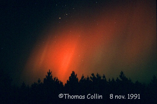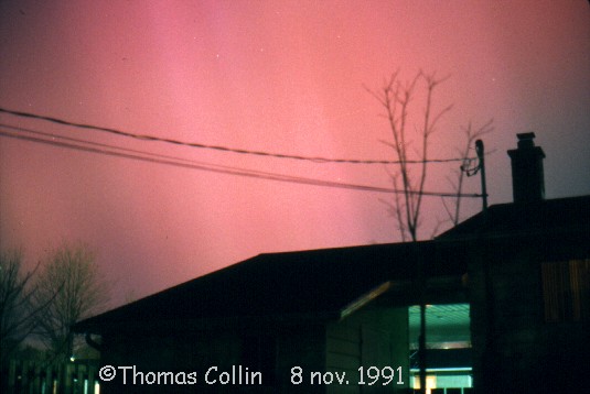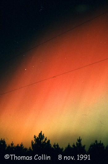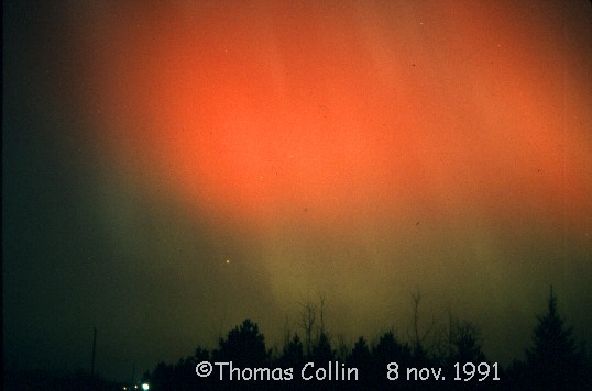 Aurores du 8 novembre 1991. Photos prises à St-Célestin lors d'une soirée d'observation avec le club d'astronomie Jupiter.