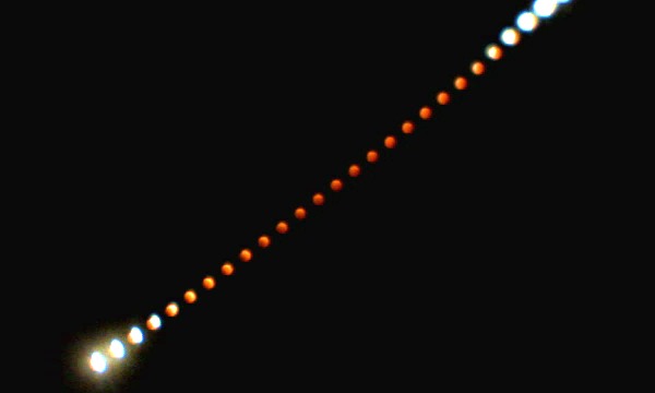 Montages fait à partir de photos prises avec une Toucam Pro avec sa lentille originale. Cette première photo a été réalisée en additionnant toutes les photos acquisitionnées à chaques minutes.