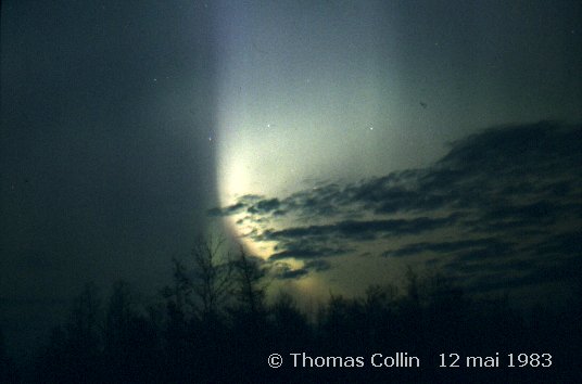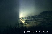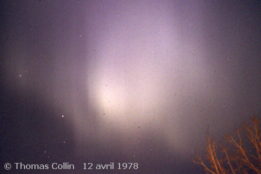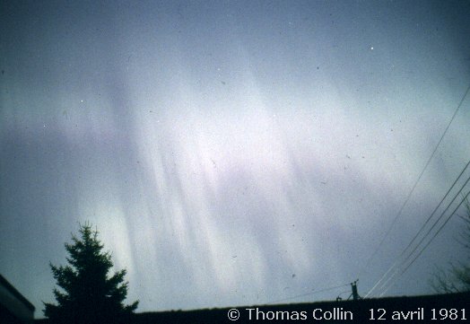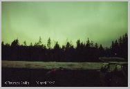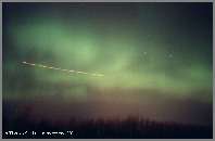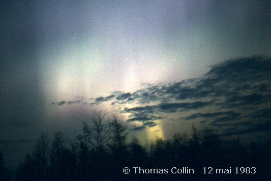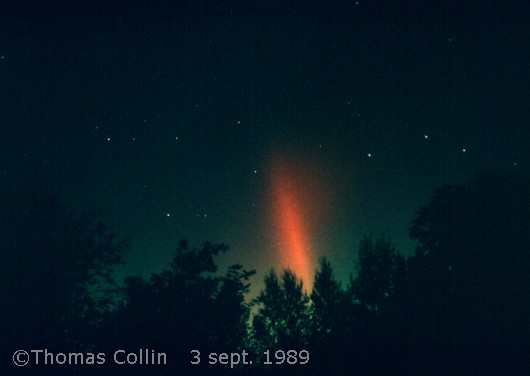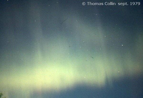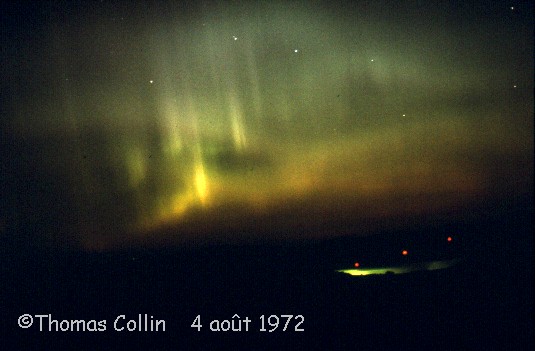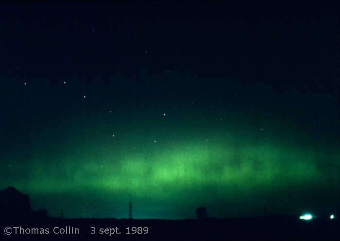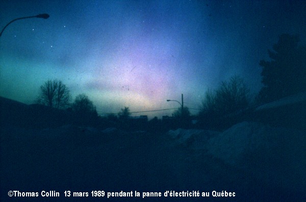Aurores causée par un orage magnétique qui a aussi été responsable d'une panne d'électricité à la grandeur du Québec. Photo prise à Trois-Rivières-Ouest, le 13 mars 1989.