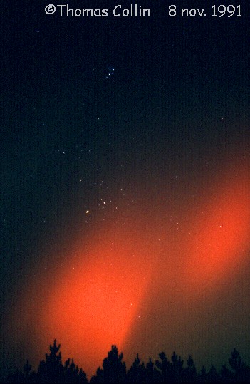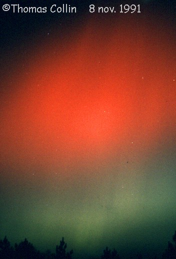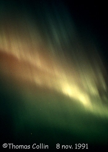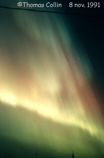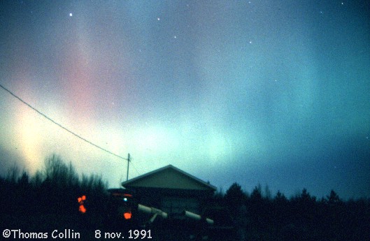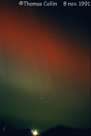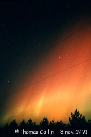 Aurores du 8 novembre 1991. Photos prises à St-Célestin lors d'une soirée d'observation avec le club d'astronomie Jupiter.